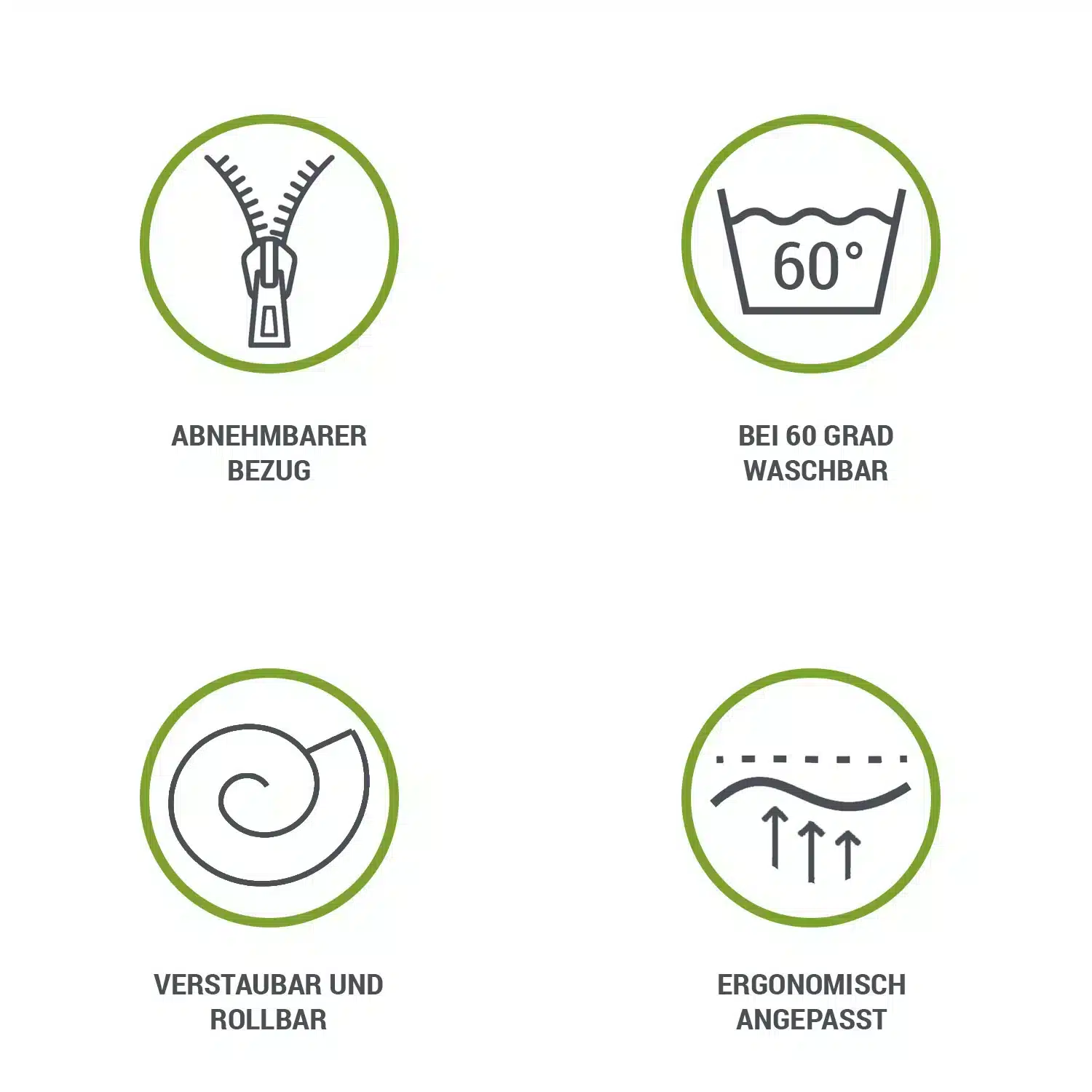 Viscoschaum passt sich präzise an die Körperkonturen an, verteilt das Körpergewicht gleichmäßig und reduziert Druckpunkte, was zu einem angenehmen und erholsamen Schlaf beiträgt.